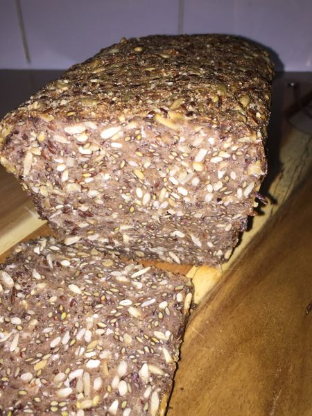 Poppy seeds, chia seeds, sunflower seeds, pepitas, linseeds, psyllium, coconut flour, banana flour. You will need to add: Coconut oil, filtered water.