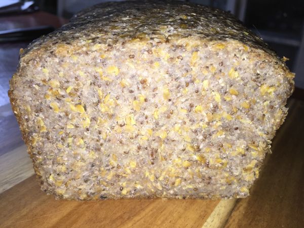 Quinoa, buckwheat, coconut flour, banana flour, linseeds, chia seeds, psyllium coconut oil, water.