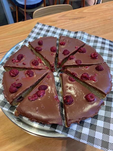 Ganche: Cocoa butter, cocoa powder, raspberries, maple syrup & coconut cream