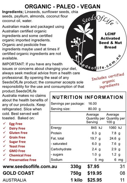 The organic LOW CARB HIGH FAT PALEO BREAD is now available!!!