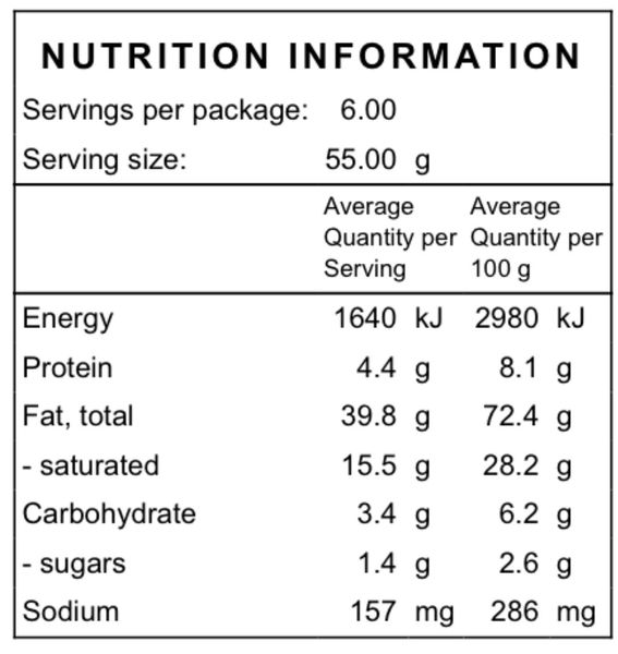 All Organic Ingredients: Macadamia nuts, almond meal, macadamia oil, coconut oil, coconut, quinoa flakes, linseeds, coconut syrup.