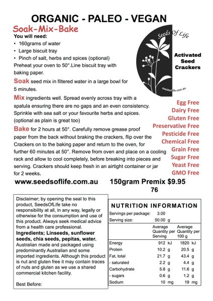 ACTIVATED SEEDS OF LIFE CRACKERS - Premix 150g (nut free)