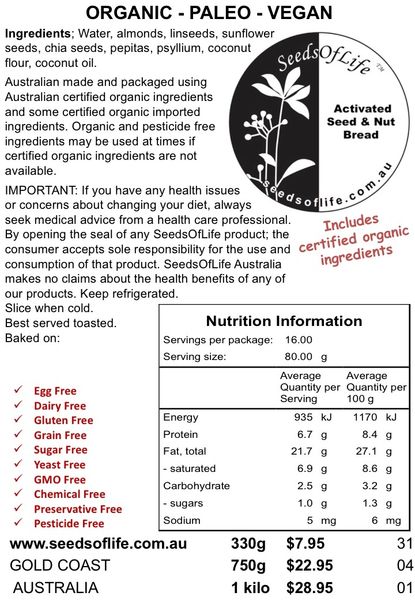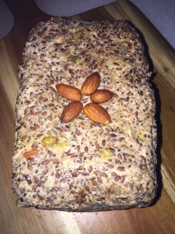 Almonds, chia, sunflower seeds, pepitas, linseeds, psyllium husks and coconut flour, coconut oil.