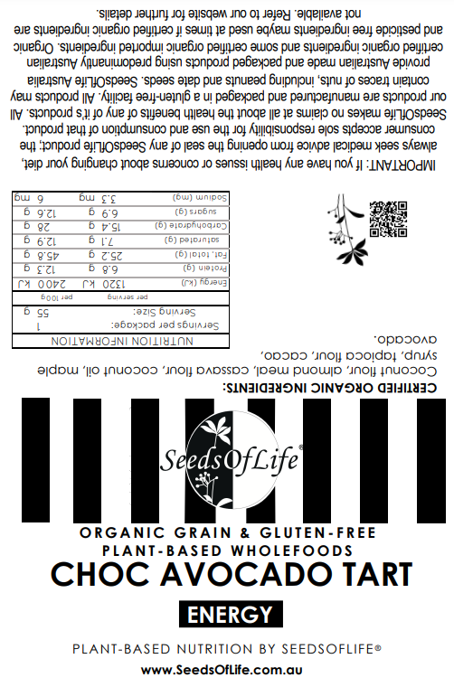 Rich in flavour and a smooth mousse like texture on our famous shortbread crust. Certified organic ingredients, Almond meal, coconut oil, water, tapioca, avocado, cacao, coconut butter.
