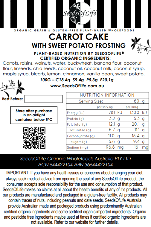 Carrot, water, buckwheat, banana flour, coconut flour, linseeds,